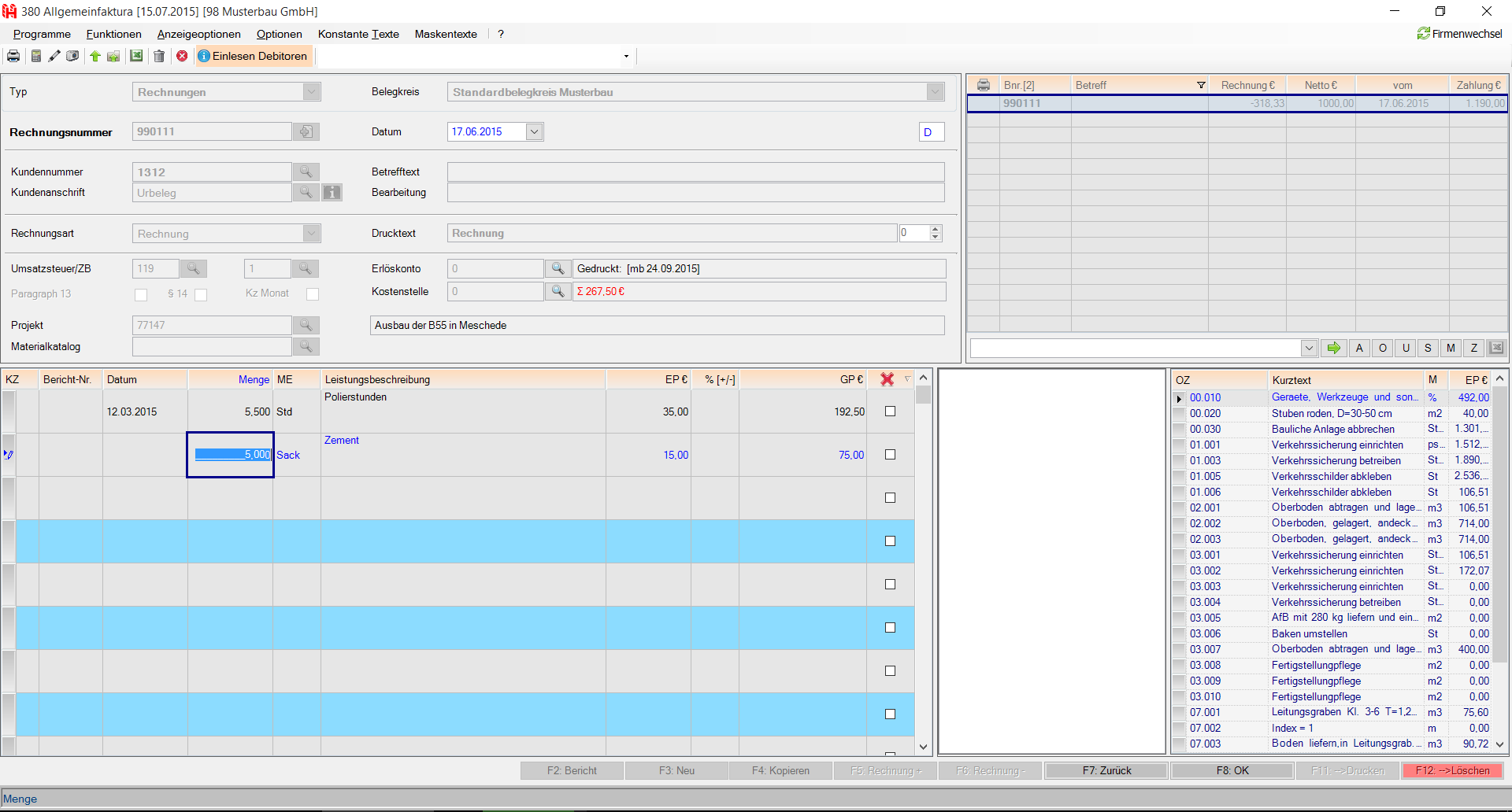 Dieses Programm rechnet Lieferungen und Regieleistungen ab. Das sind z.B. Regie-, Materiallieferungen Gerätegestellungen usw., die im Zusammenhang mit Bauvorhaben oder bei Jahresverträgen erbracht werden.