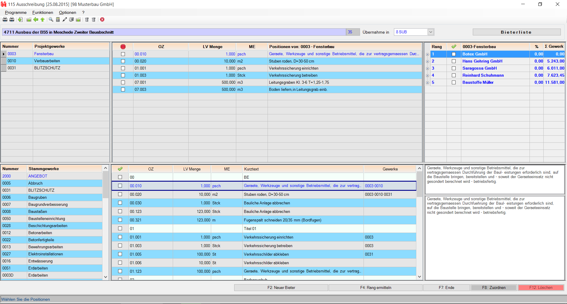 - Positionsübergabe an MS-Excel zur Anfrage der Nachunternehmer.