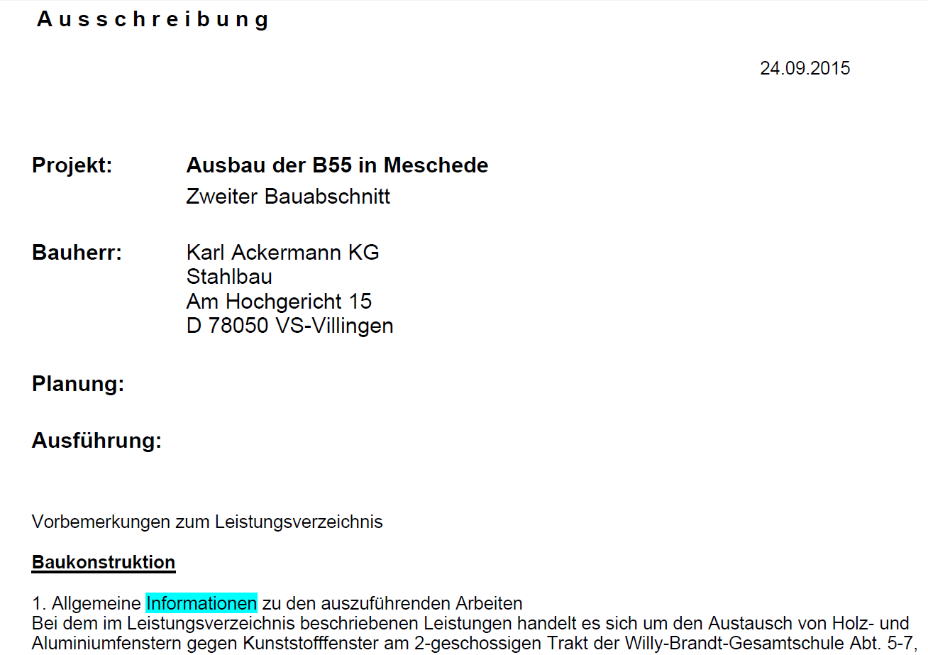 - Ausschreibung mit Kurz- und Langtexten / Vorbemerkungen als Pdf, Ausdruck und Gaeb DA84.