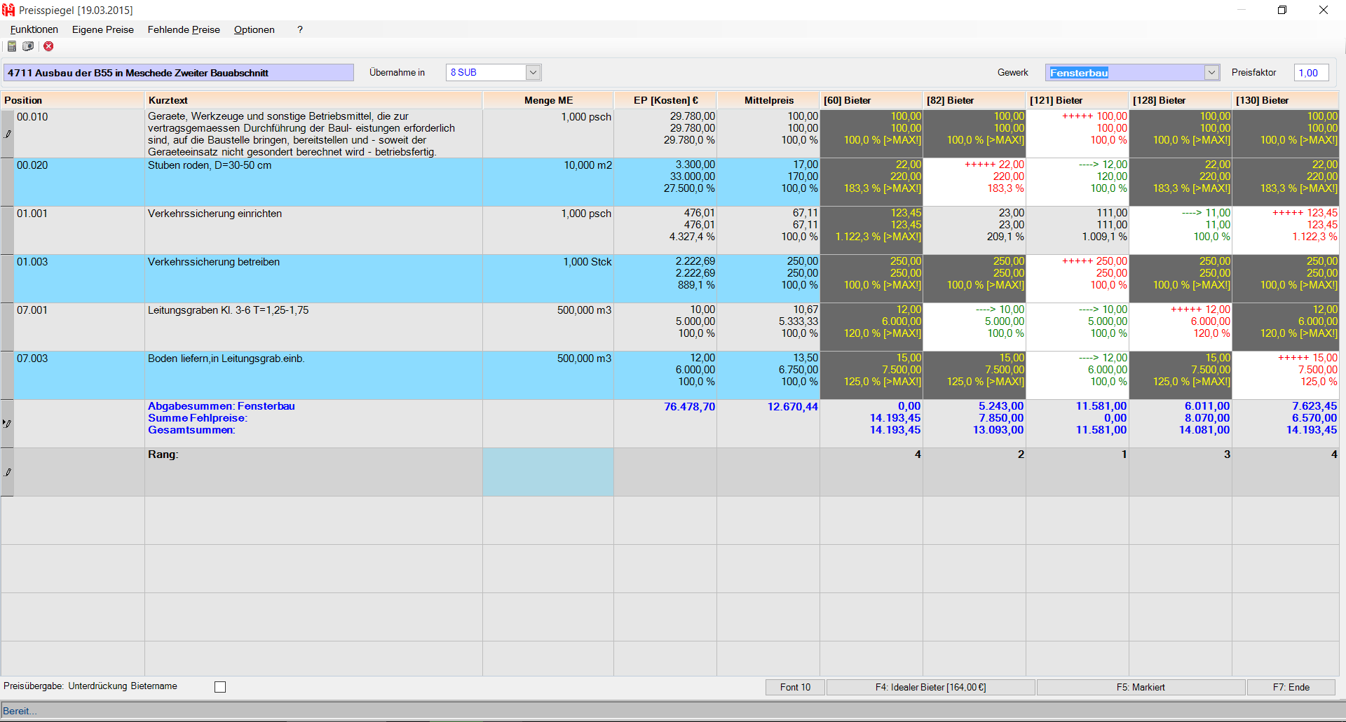 - Preisspiegel der Nachunternehmer nach Pdf / Excel oder Papier.