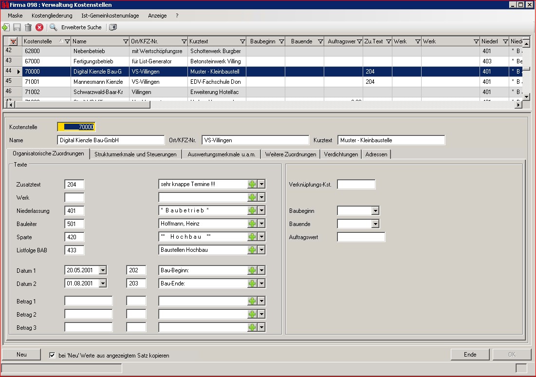 Sie können die Baubetriebsabrechnung auch ausbauen zu einem anspruchsvollen System, in dem die Kosten entsprechend dem betrieblichen Wertefluss über mehrere Stufen bis zu den Kostenträgern weitgehend automatisch durchgerechnet werden. Dann liefert sie Ihnen eine Fülle von Möglichkeiten, bis hin zur restlosen Verteilung von Gemeinkosten oder zur Verrechnung von Prozesskosten nach Breuninger. Mehrstufige Verrechnungen am Ende eines Monats können in eine feste Form gegossen werden. Rationell erfassen, vielseitig buchen, kreativ auswerten, was das im Einzelnen bedeutet, das zeigen die folgenden Ausführungen.