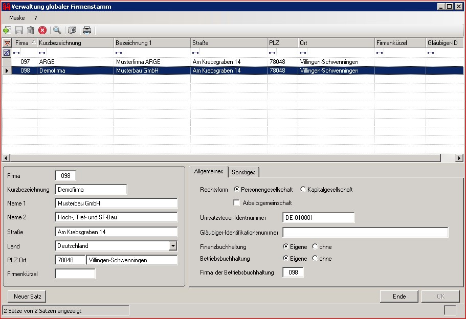Neben der Unternehmensrechnung beinhaltet die Anwendung auch die Anzahlungsverwaltung und das ARGE - Rechnungs- und Berichtswesen.