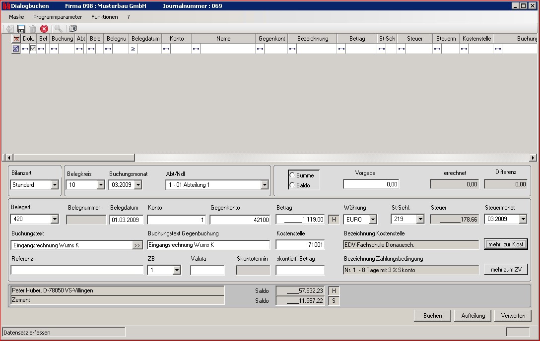 Beim Buchen besteht der Zugriff auf die erforderlichen Stammdaten über Auswahllisten mit Suchfunktionen.