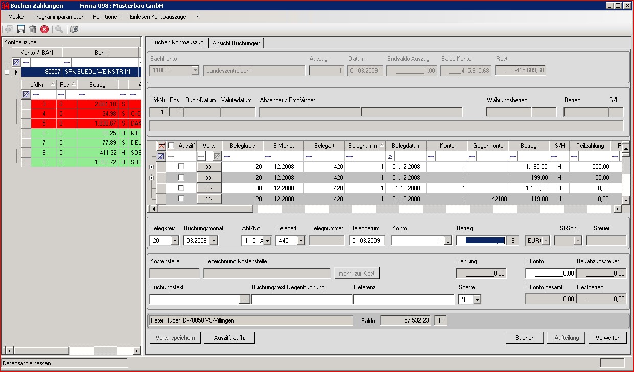 - Es erfolgt eine permanente Anzeige des aktuellen Kontenstandes sowie des Kontenstandes lt. Kontoauszug nach der durchgeführten Zahlungsbuchung.