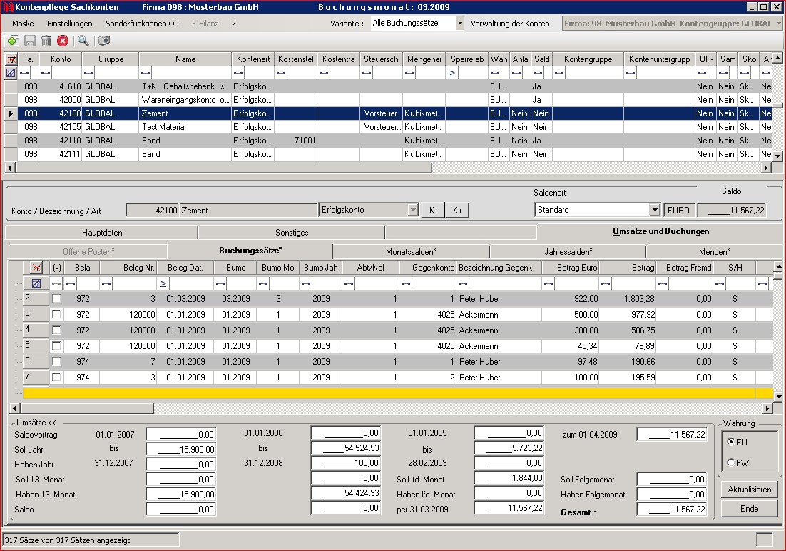 - Bei den Personen- und Sachkonten können auch OPs und Buchungen verwaltet werden (z.B. Auszifferungen)