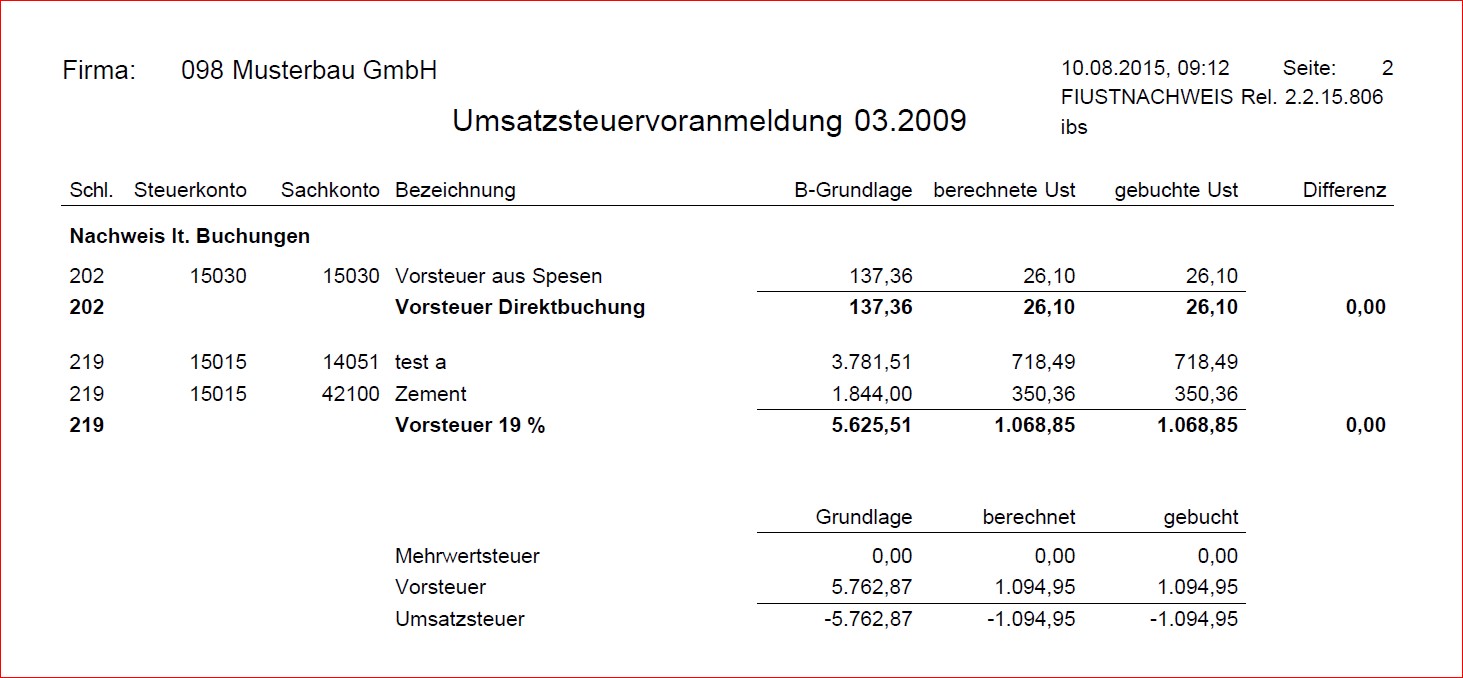 - Umsatzsteuernachweis für Firmen und Organschaften mit